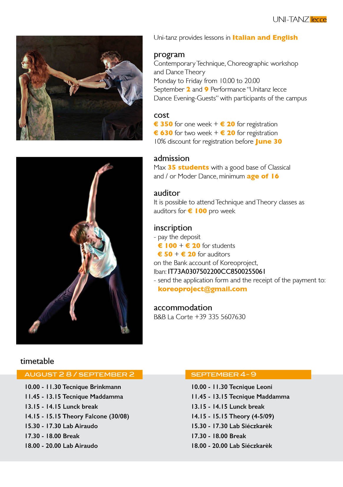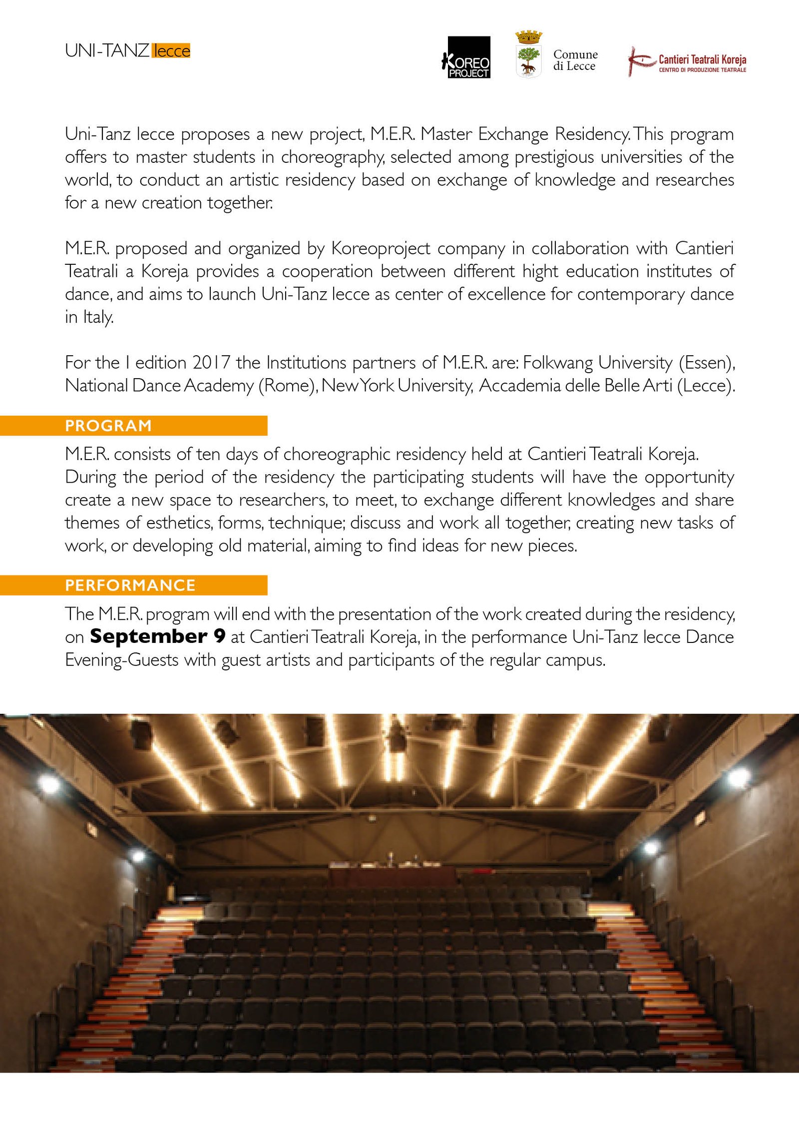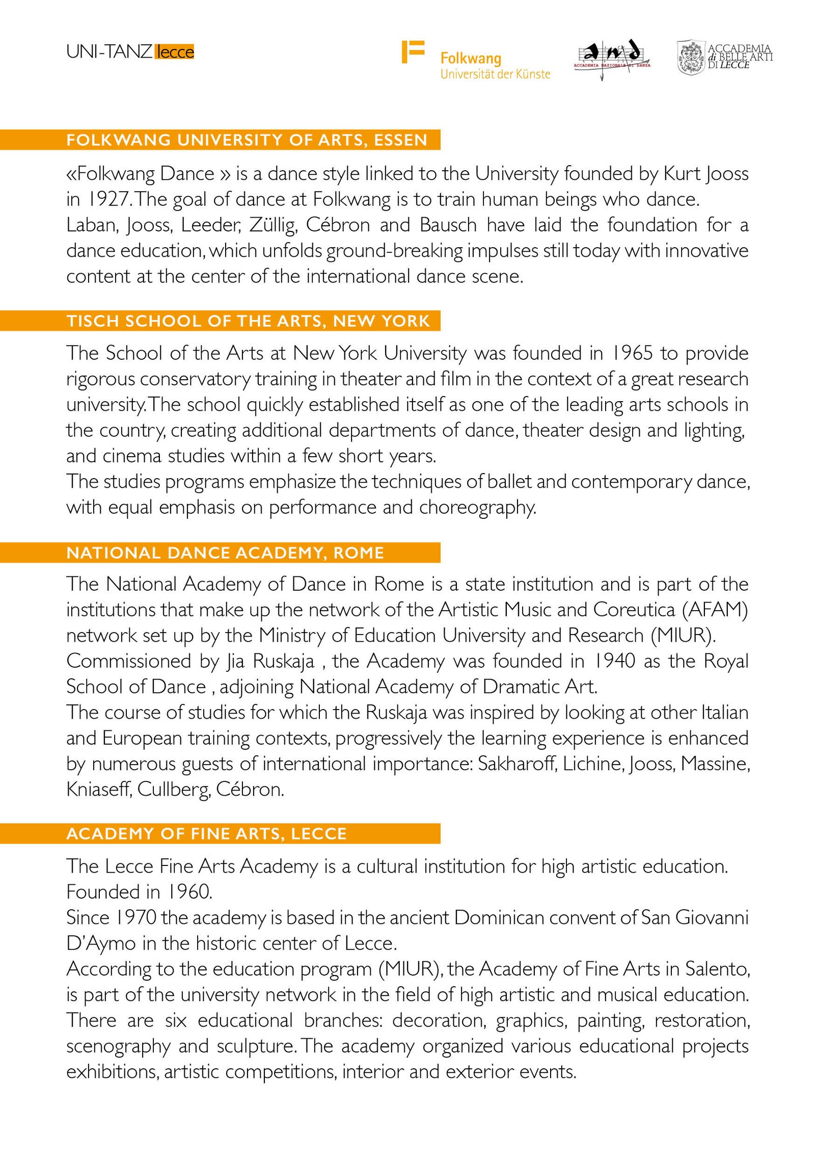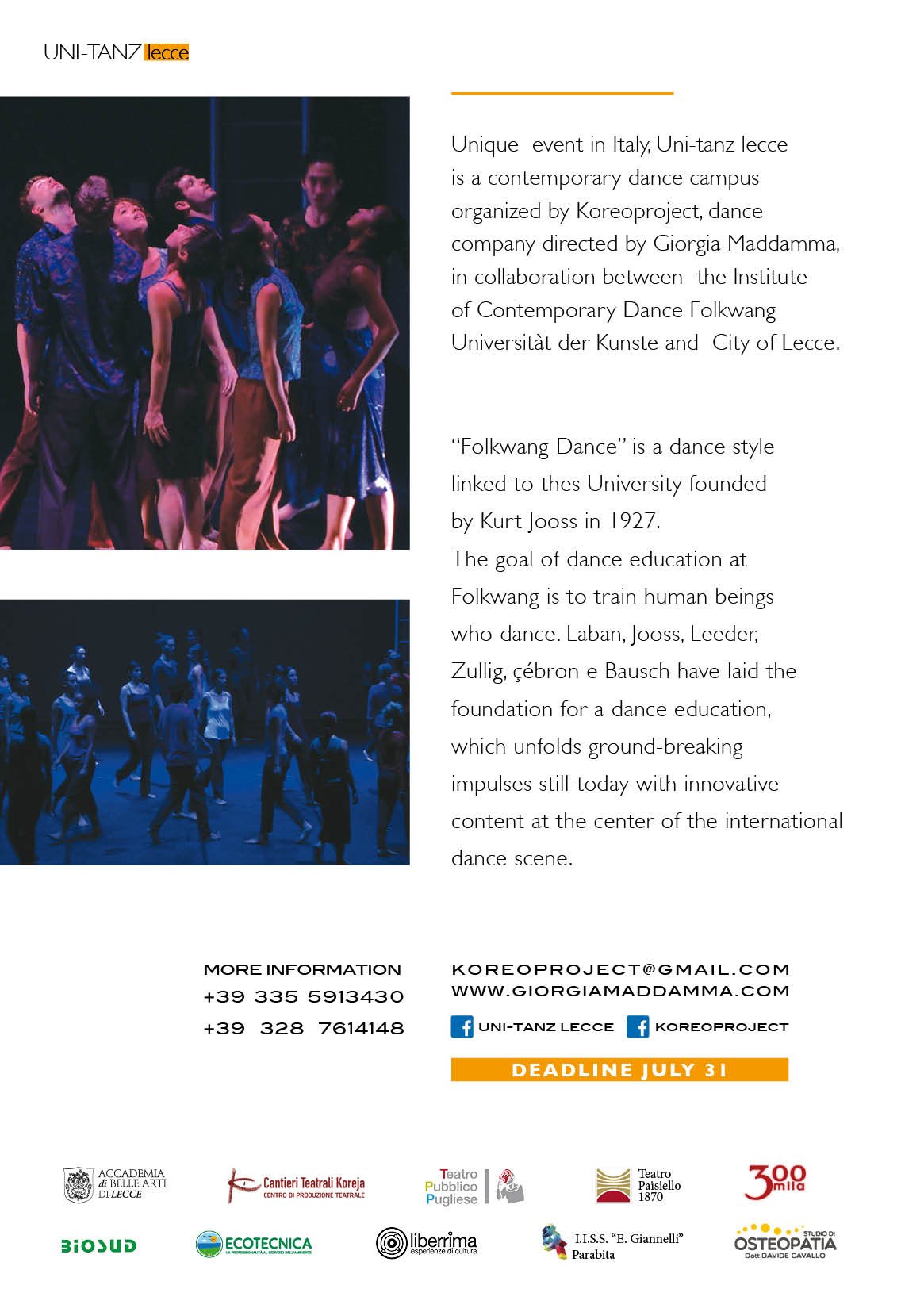 International contemporary dance campus organized by Koreoproject in collaboration with Folkwang University of Arts, City of Lecce and Teatro Pubblico Pugliese.